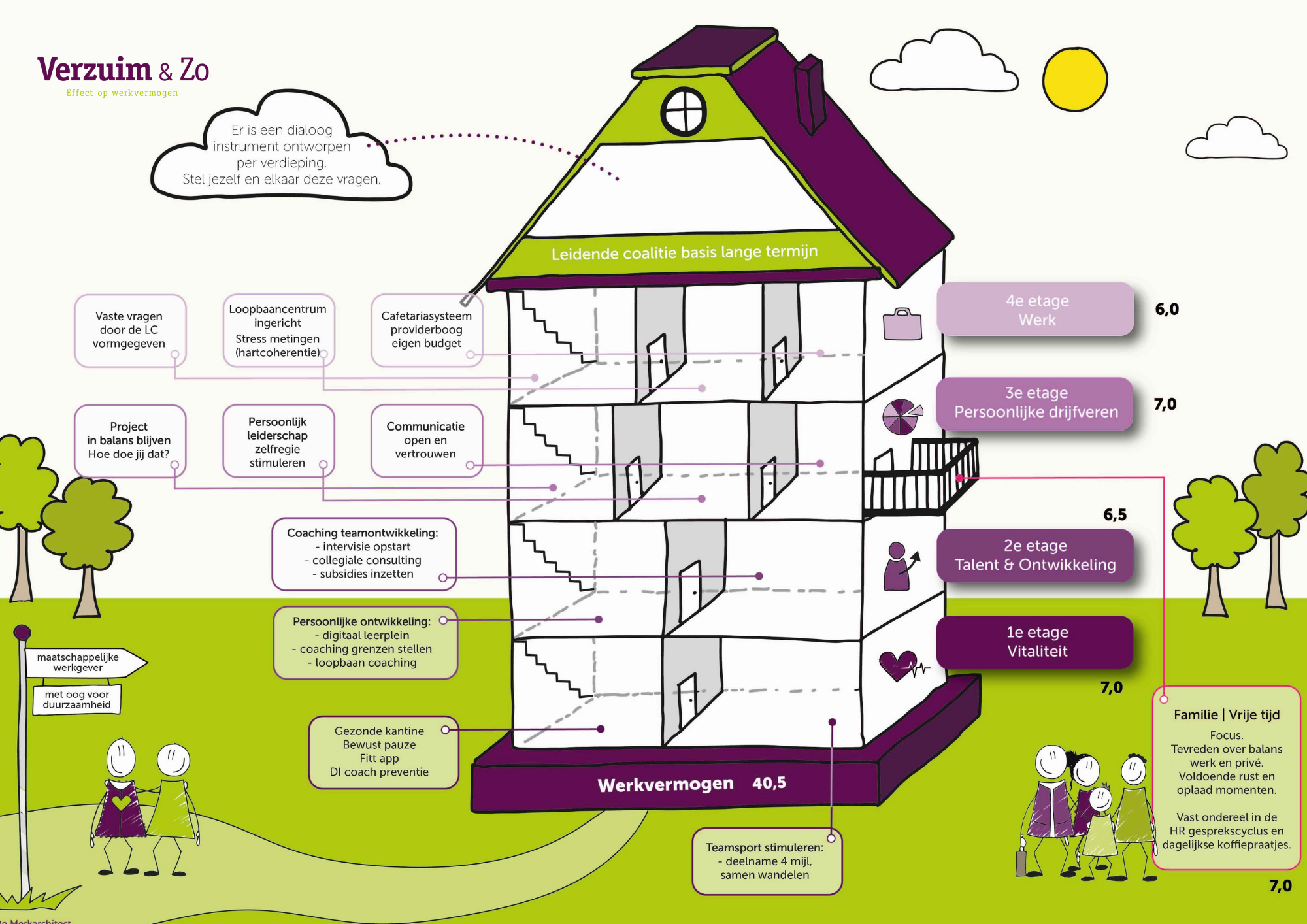 Het huis van Werkvermogen is een analysetool, maar ook een waardevolle toolbox. Het geeft inzicht in de knelpunten, maar laat ook zien waar de behoeftes liggen. Het creëert bewustwording bij de medewerkers en maakt ze enthousiast om zelf actief aan de slag te gaan!